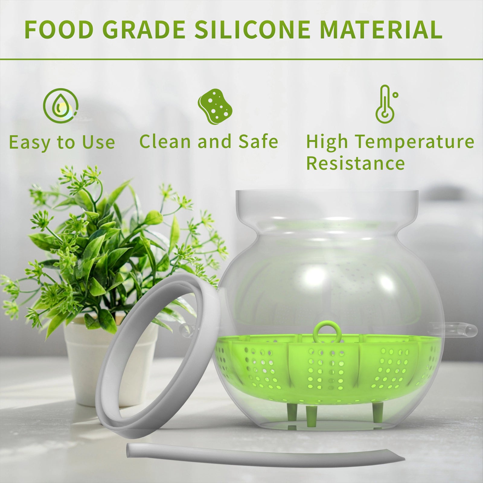 Sellado fuerte: anillo de silicona de sellado de calidad alimentaria con rendimiento estable y fuerte resistencia al calor, lo que mejora la estanqueidad, la facilidad de uso y la estabilidad de funcionamiento del destilador de vidrio. Asas anti-escaldaduras en ambos lados, fáciles de mover y más seguras de usar.