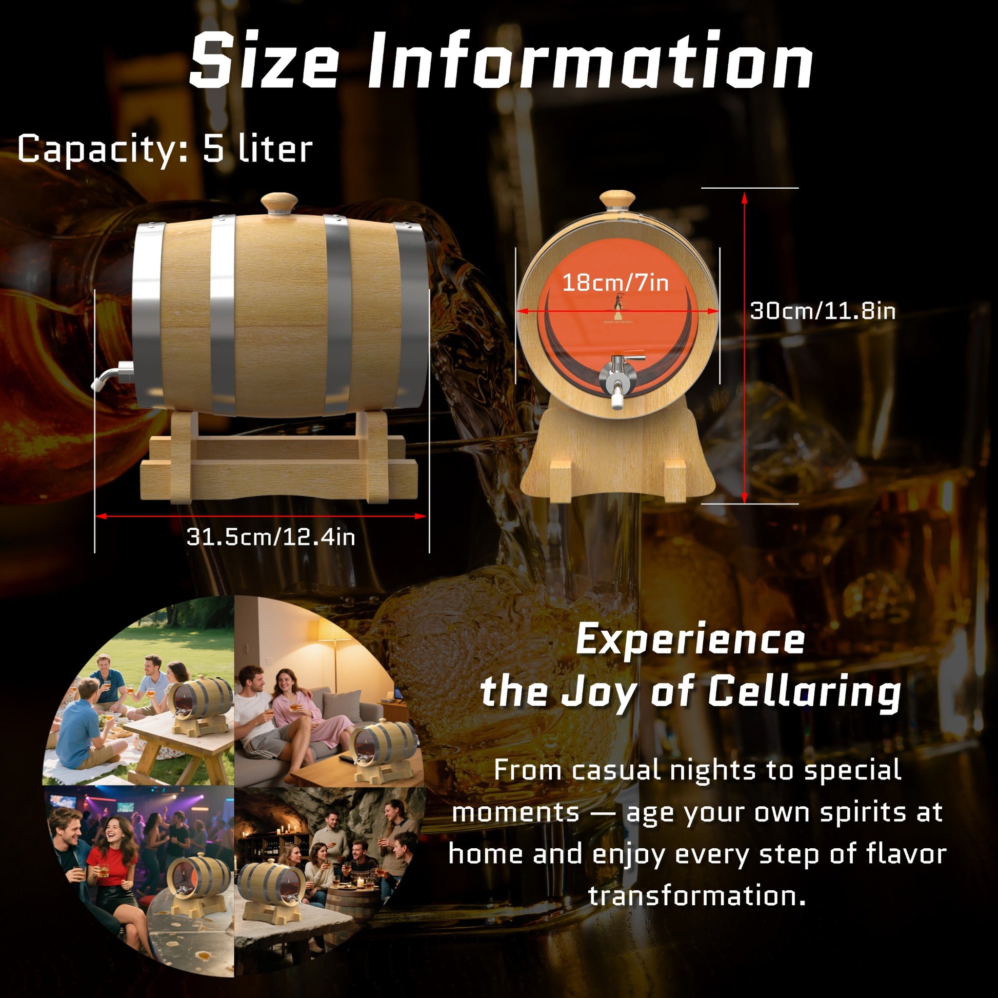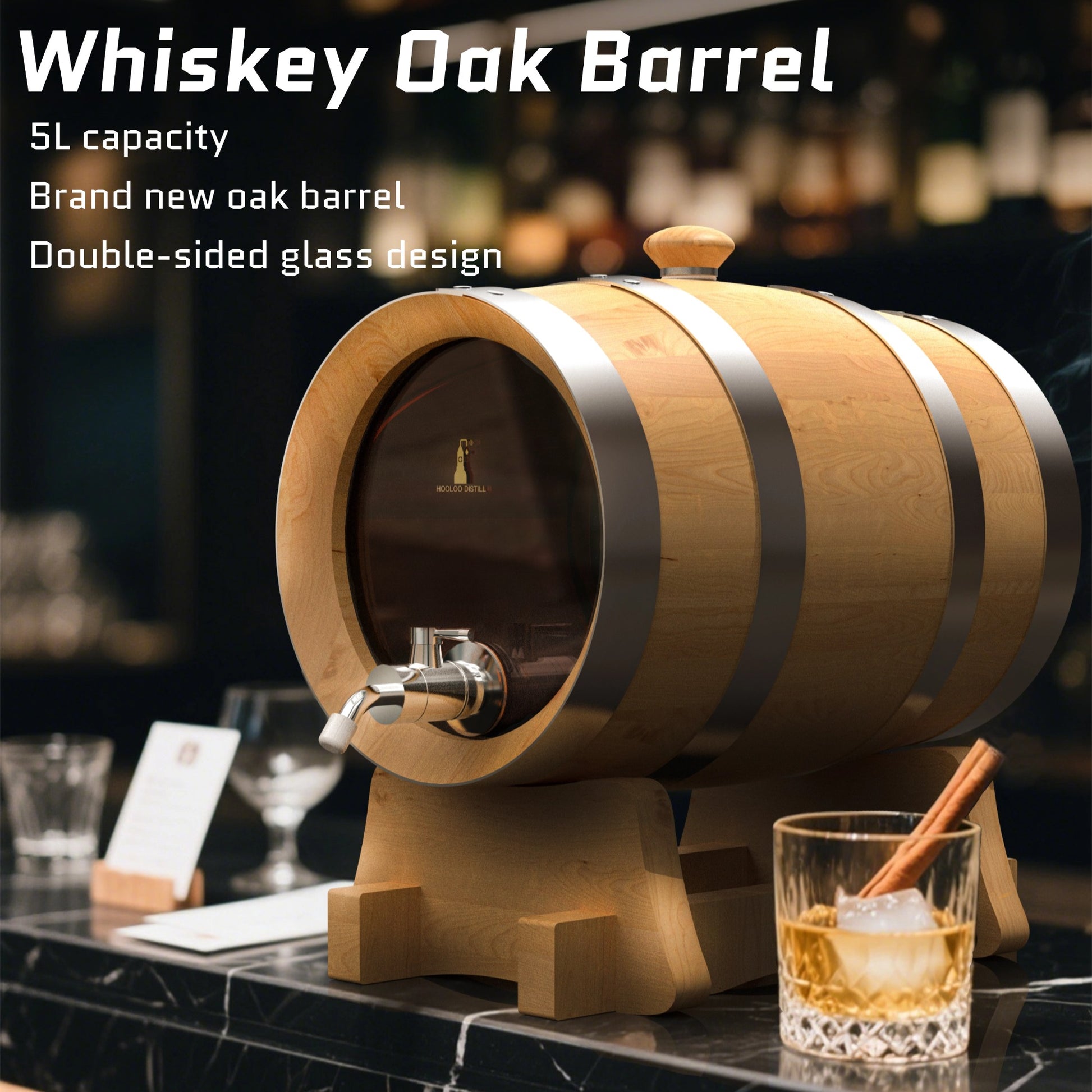 5L European White Oak Barrel - Glass Perspective