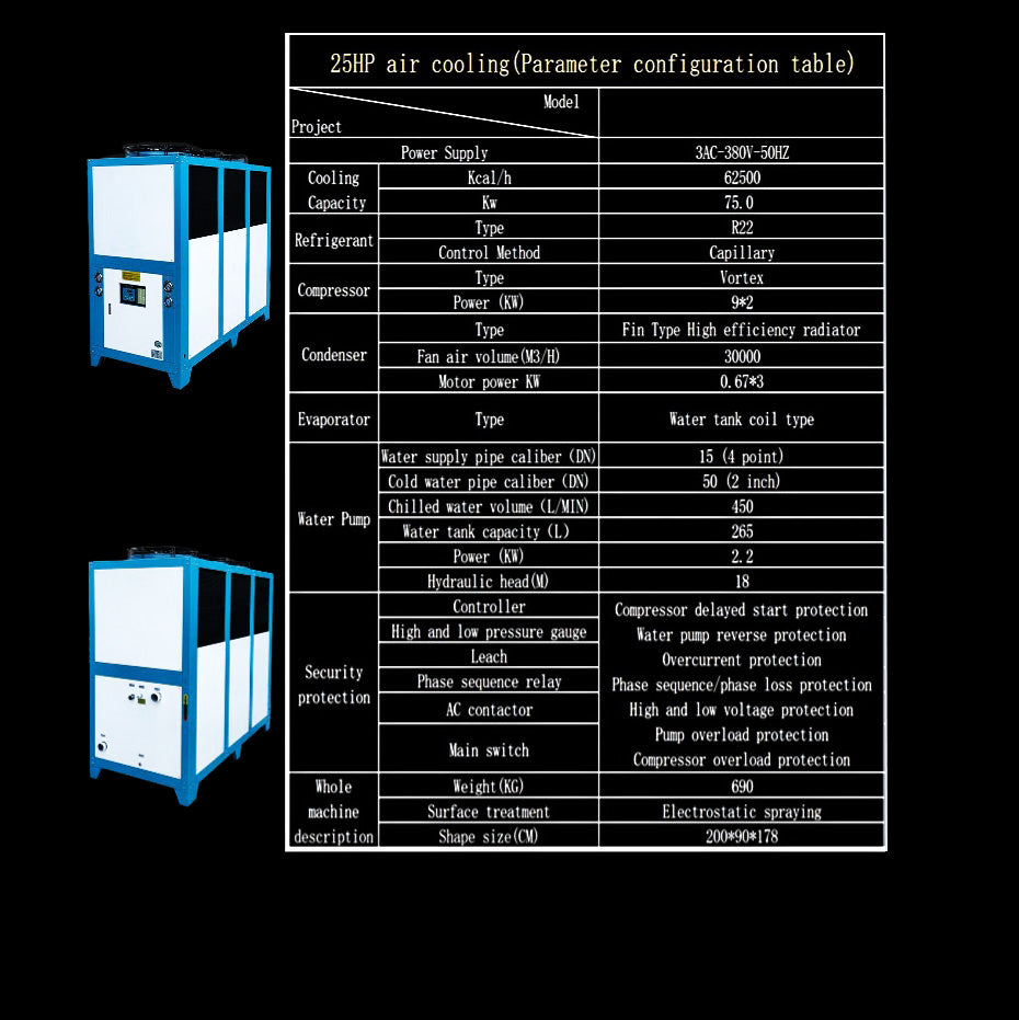 1. Chiller (700W cooling capacity) × 1 Set