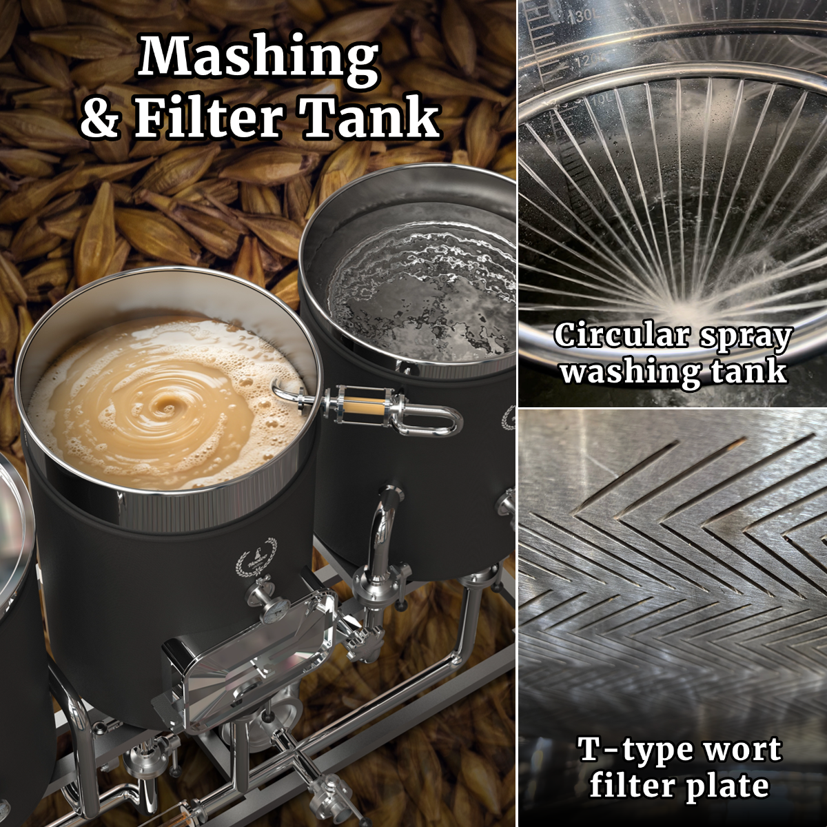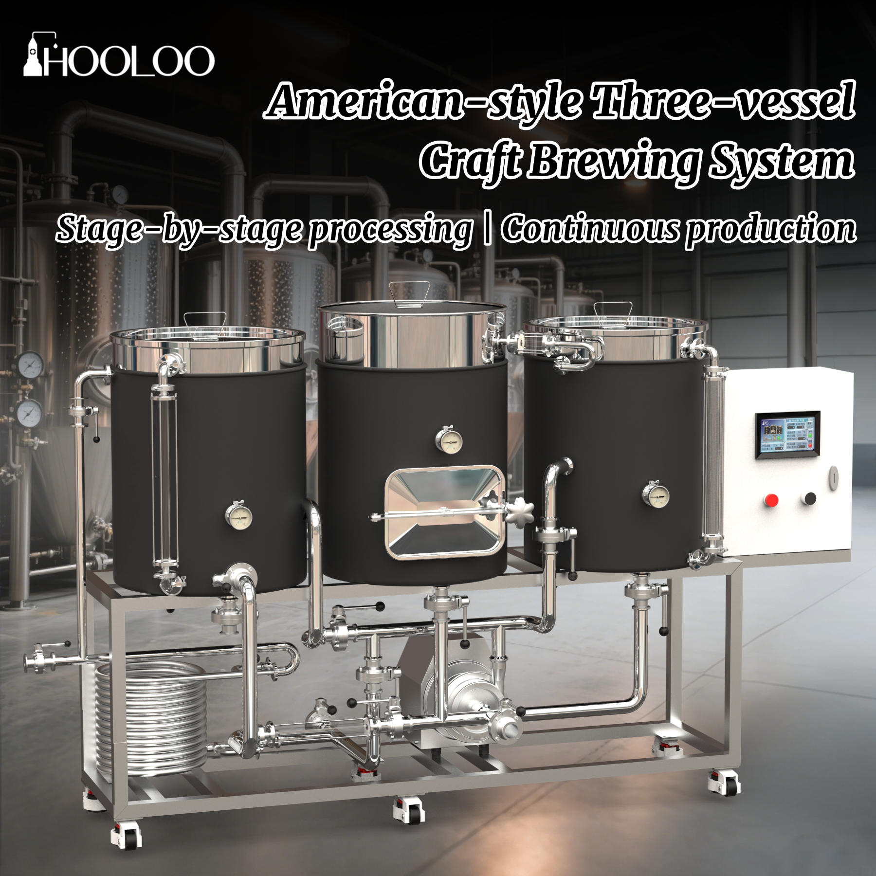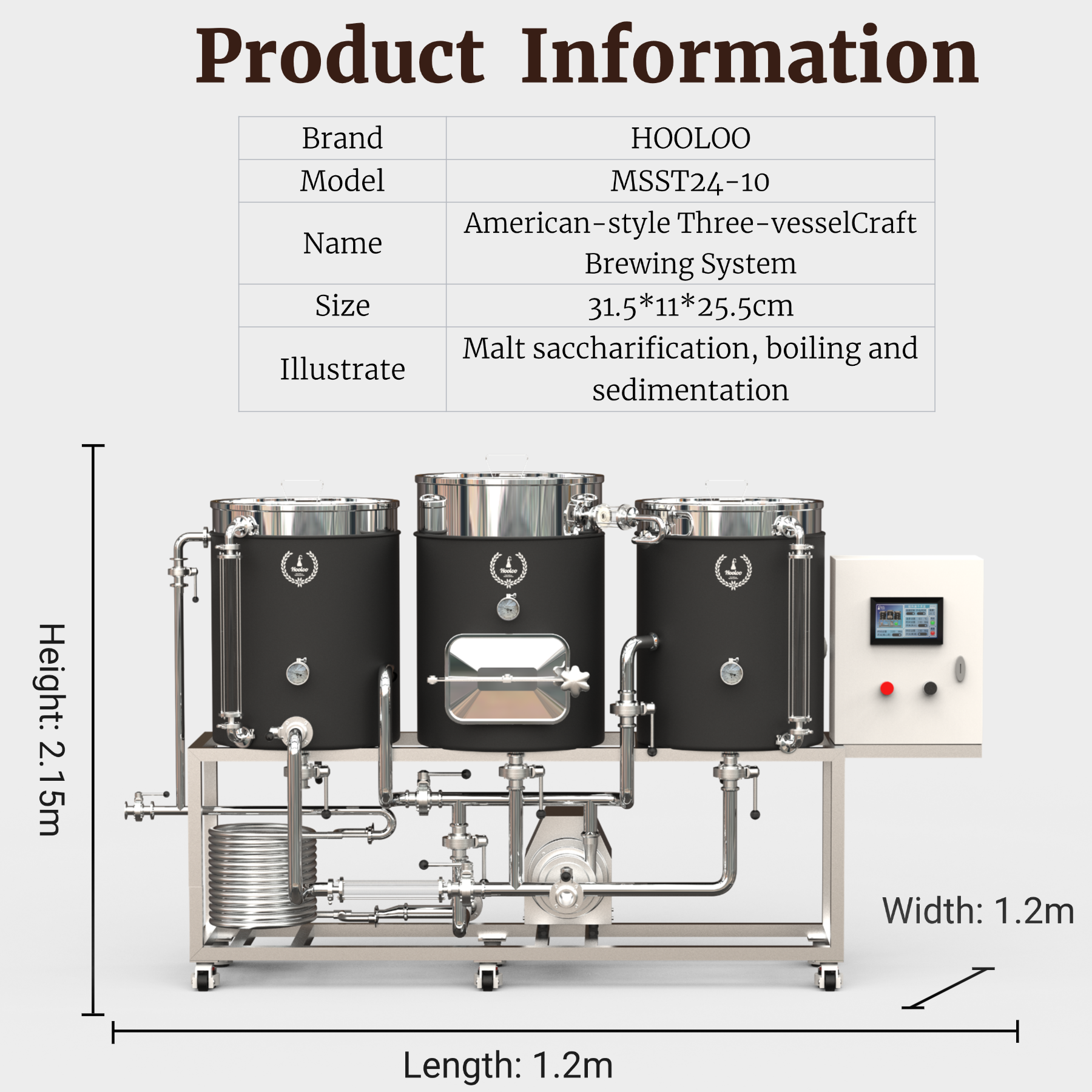 HOOLOO American Three Barrel Mash Tun Stainless Craft Beer Equipment All-in-one Small Commercial Home Brewing Beer Equipment