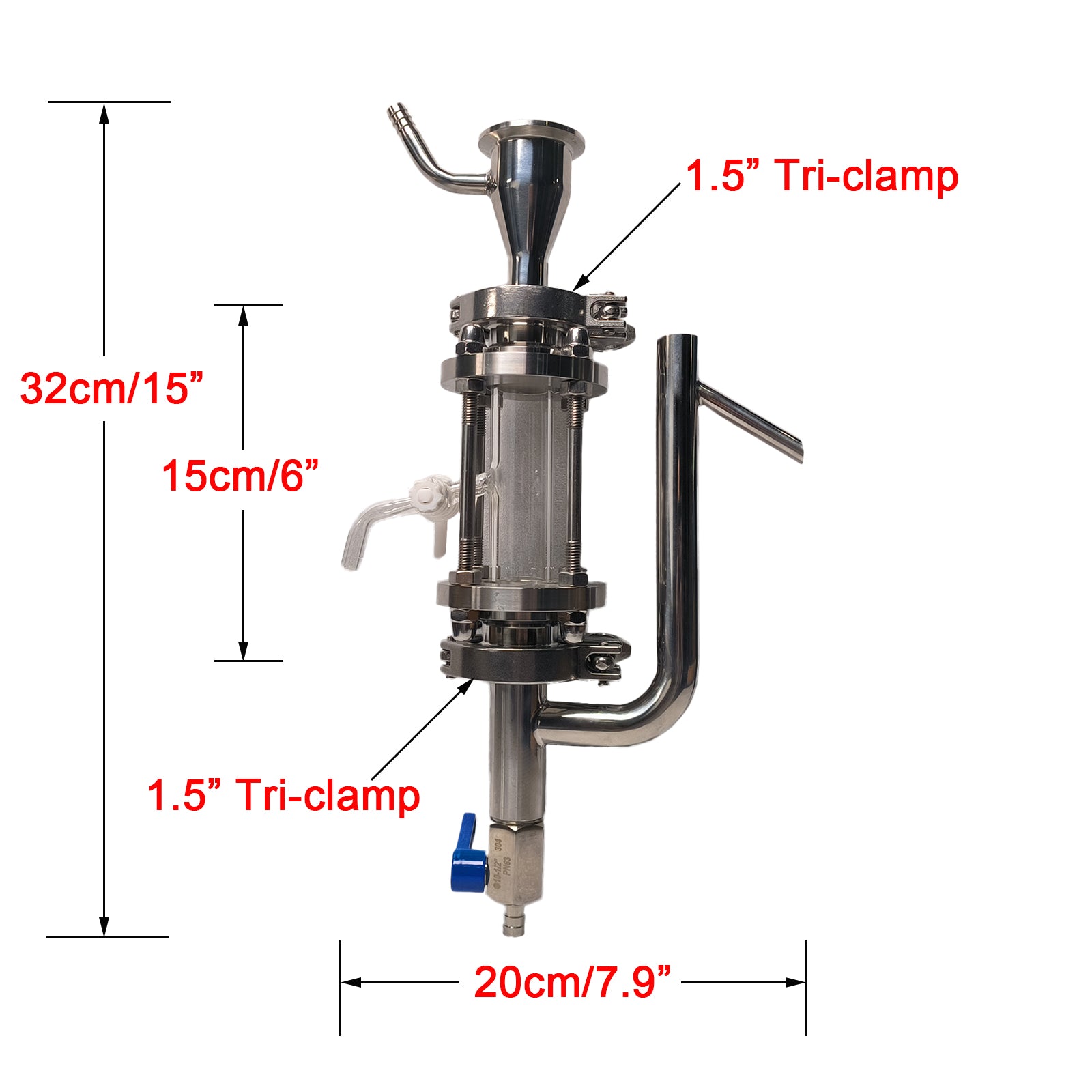 Comprehensive Versatility: This is a complete set of tools, including the air pressure balance port on the top, the sight glass with the sampling port in the middle, the stainless steel conduit, and the ball valve. The versatility of this set design makes essential oil separation and collection easier.